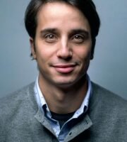 A person is in a park with a Dalmatian dog. The person appears to be engaging with the dog, possibly training or playing, as they are gesturing with their hand. The dog stands attentively in the grass. The background features agility training equipment and a warm, golden lighting from a setting sun.